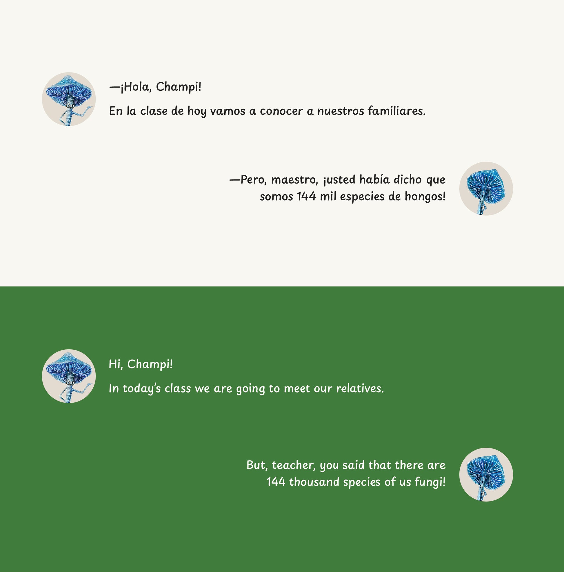 Champi and his teacher are very curious mushrooms. Join them as they embark on an adventure to meet the characters of the mushroom kingdom. As they talk, you will learn about mycelium, the life cycle of mushrooms, their function in nature, and about the different members of the mushroom kingdom. Happy travels in the company of Champi and his teacher!